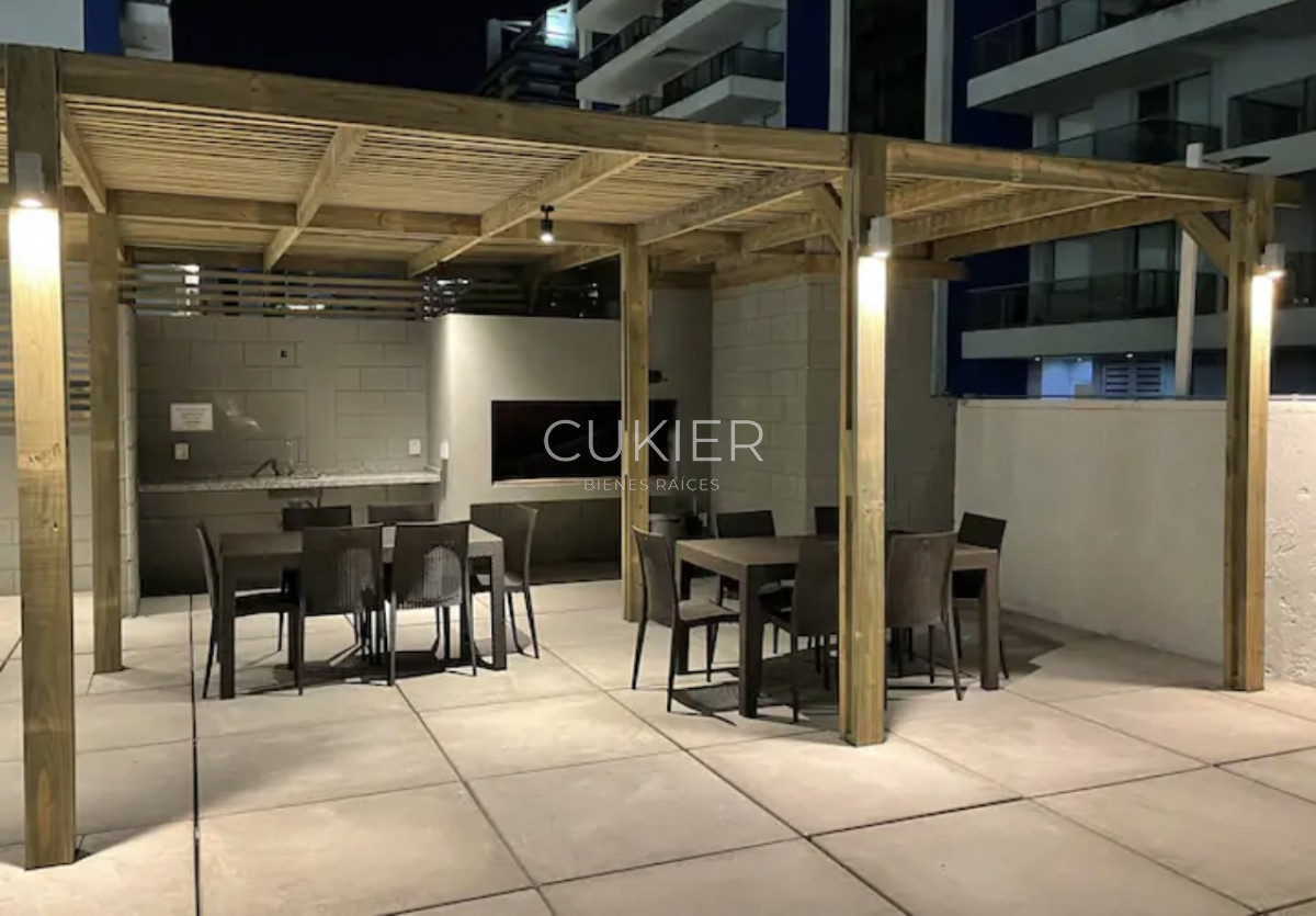El edificio cuenta con piscina exterior, piscina climatizada interior, gym, barbacoa, seguridad 24 hs.